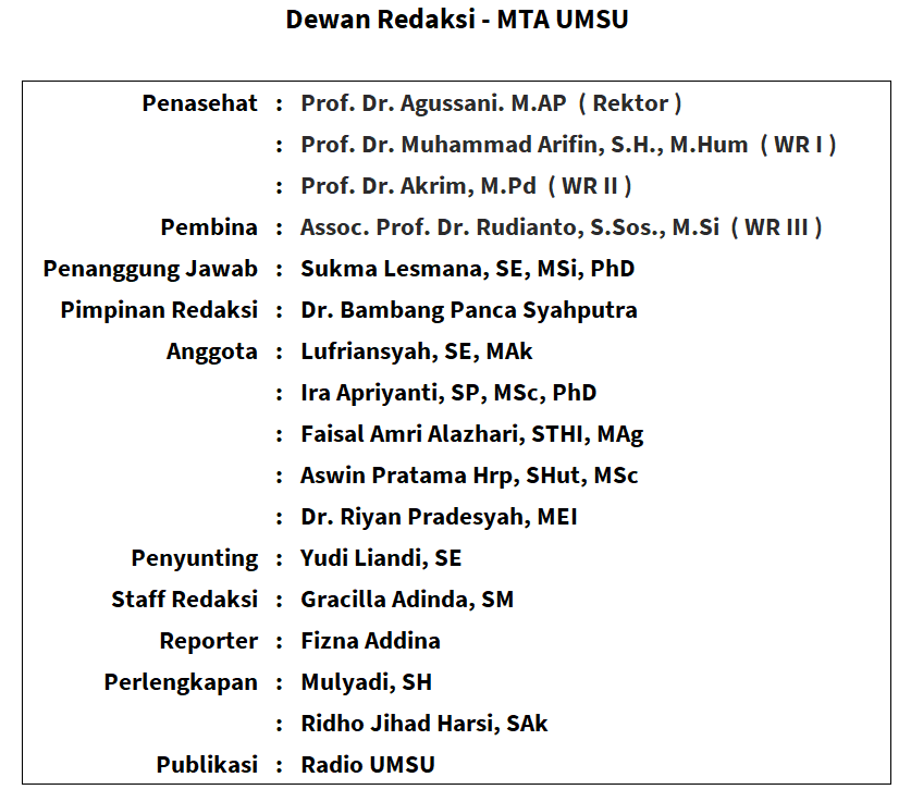 Majalah Temu Alumni UMSU ( M T A ) e-Magazine of PJK BERITA SEPUTAR ALUMNI UMSU (terbit bulanan) Scan to Read in Mobile Salam Redaksi Success Story Seputar CDAC Kabar KeDan Kampus siana Tausiyah Karir MTA Volumes Visitors : 445498